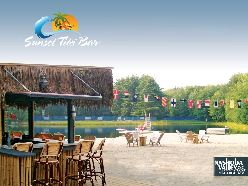 Enjoy a fun atmosphere at the Sunset Tiki Bar at Nashoba Valley Ski Area, live music from Loose Connection and tournament hosting by Wicked Cornhole!